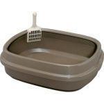 深型形状の猫用トイレ。幅40×奥行29×高さ16cmのサイズで、猫砂をたっぷり約5L敷けるため、汚れた箇所だけを取り除ける機能的な設計です。本体内側には、スコップを掛けられます。