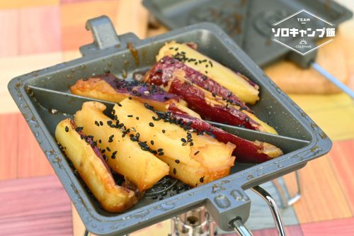 さつまいもの水を切ったら、ホットサンドメーカーの中に敷き詰め、上からサラダ油大さじ1をかけて蓋をしめます。両面を5~6分程熱し、さつまいもが焼けたら醤油小さじ1/2とはちみつを回しかけ、全体的に蜜が絡まったら完成。好みで黒ゴマをかけるのもおすすめの食べ方です。