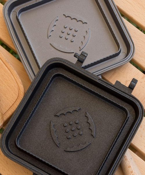 真ん中に分割ラインがあり、2等分しやすい直火式ホットサンドメーカーです。直火で使えるため、家庭はもちろん、アウトドアでも活躍。きれいな焼き上がりを実現しやすいのが特徴です。