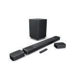 Dolby Atmos・DTS:Xに独自のMultiBeamを組み合わせた、7.1.4chの立体音響を実現するサウンドバーです。本体両端のリアスピーカーは着脱式のワイヤレス設計。充電式でケーブルレス接続が可能な構造です。背後からの音響効果を手軽に楽しめます。