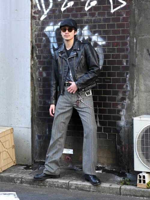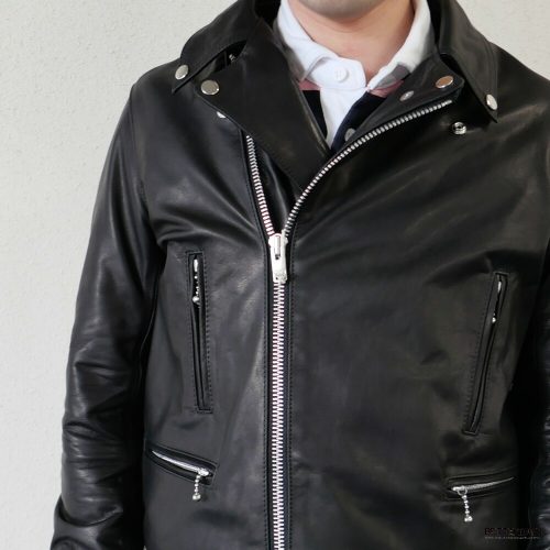 また、バックサイドのウエストバックルや長めの着丈といった「ロンジャン」と呼ばれる英国スタイルも魅力。無駄のないシンプルなデザインは、ハードな印象を和らげます。初めてダブルライダースに挑戦する方にもおすすめのアイテムです。
