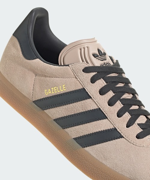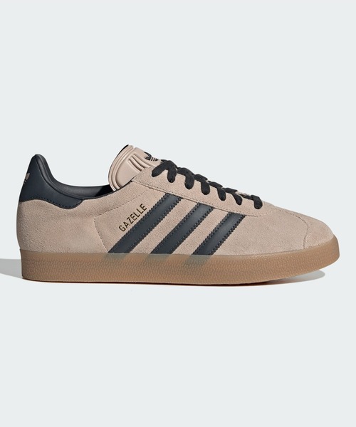 ギザギザのスリーストライプスが目を引くベージュスニーカー。定番モデルのひとつで、デイリーユースからオフィスカジュアルまで幅広いコーデに馴染みます。スエード素材のアッパーもおしゃれなポイントです。
