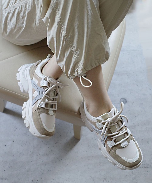 ボリュームのある厚底に、シックな色味を組み合わせたベージュスニーカー。インパクトのあるデザインのため、コーディネートの主役としても使えます。バイカラー使いがおしゃれで、デニムスタイルのアクセントにもぴったりです。