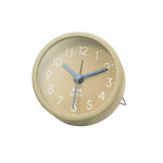 本体と針の色が異なる、遊び心あるデザインの目覚まし時計です。幅広いインテリアに馴染みやすいニュアンスカラーを採用しており、イエロー・ピンク・グリーン・ブルーグレー・ネイビーの5色から好みの色を選べます。