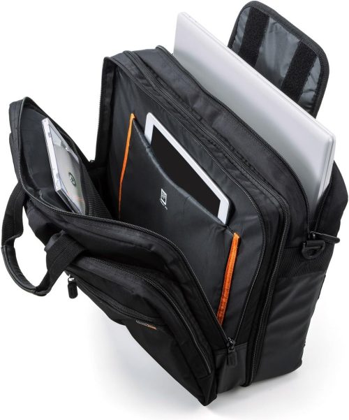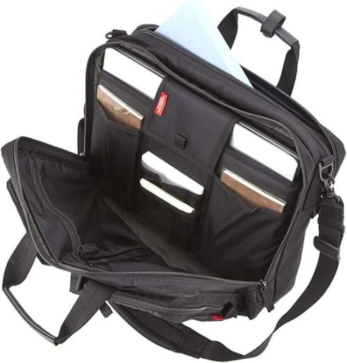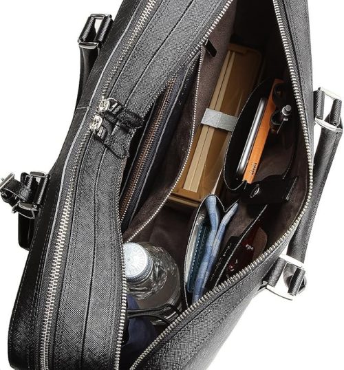 15インチのノートPCを収納できるPCスリーブがあるほか、内側に6つ、外側に1つのポケットが付属。また、ハンドルが太めに設計されているため、肩掛けの際に肩に食い込むのを防げます。上質なデザインで使いやすい大容量ビジネスバッグです。