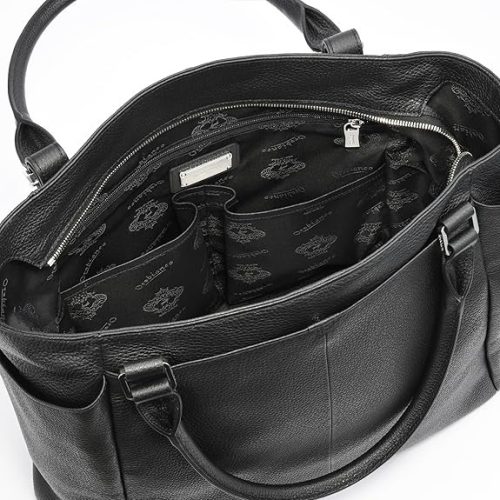 複数のポケットがあるほか、カードスロット・ペンループ・キーリーシュも備わっているため、ビジネスシーンで使うアイテムを整理して収納可能。レザー製のトップ・キャリーハンドルが、高級感をプラスします。