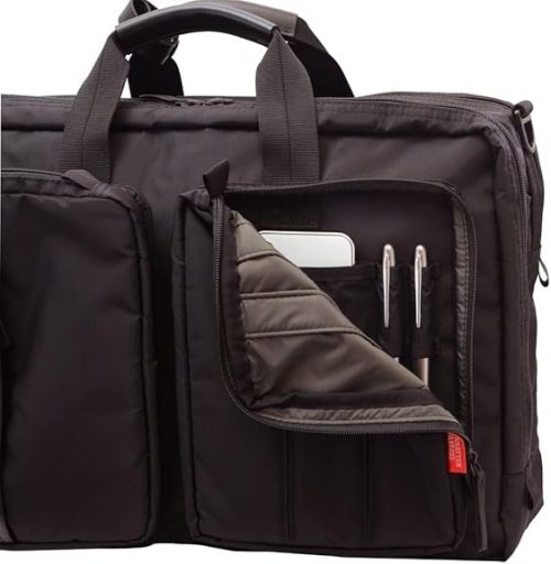 コーデュラエアー糸840デニールを強撚してオックス織にした素材を使用。撥水性の高さと軽さが魅力です。PCスリーブやメッシュポケット、ジップポケットなどが充実しており、収納力にも優れています。シンプルなデザインの大容量ビジネスバッグがほしい方におすすめです。
