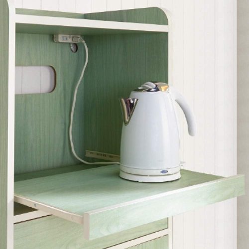 アンティーク風のグリーンの色味がおしゃれなレンジ台。木目柄を施したあたたかみのあるデザインで、レトロな雰囲気が漂います。明るく爽やかなキッチン空間を演出するホワイトも展開されています。