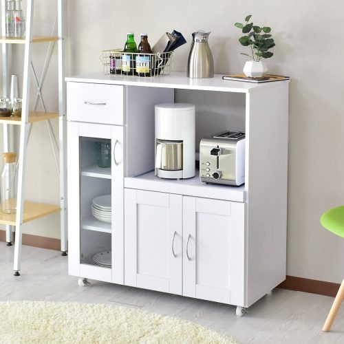 ガラス扉で中身を見せながら収納できるレンジ台。かわいい食器を並べて飾るディスプレイ収納として活用できます。スライドテーブルが備わっており、蒸気を排出する炊飯器などを置くのにぴったりです。