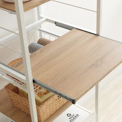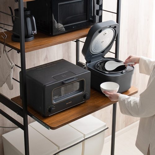 4段目の棚は手前に引き出せるスライド式のため、炊飯器など蒸気が出る家電の収納にも便利。通気性の高いオープンラックタイプのレンジ台なので、スチームオーブンレンジを置きたい場合にもおすすめです。