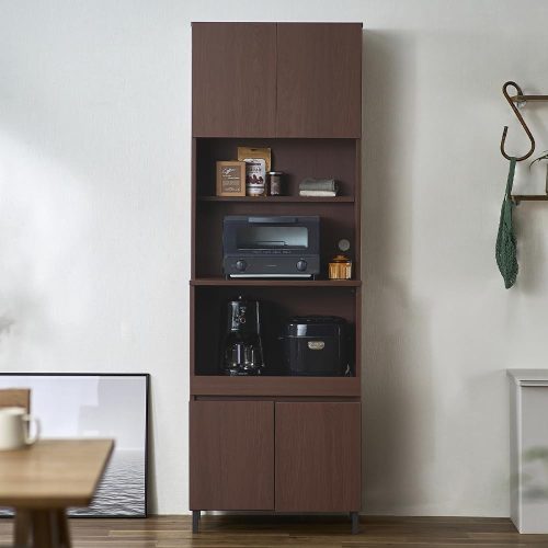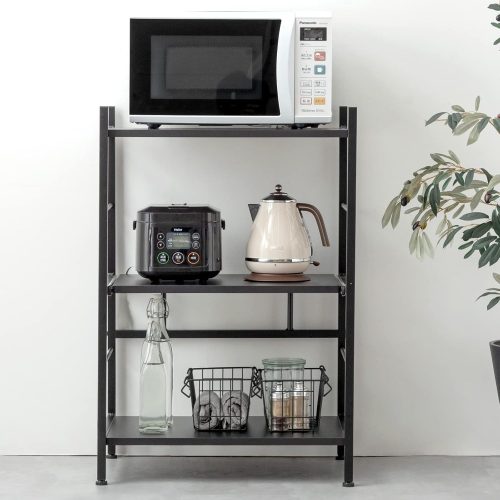 可動棚で自由に高さを調整できるため、さまざまなサイズの家電や調理器具を効率的に収納可能。カラーはブラウン・ナチュラル・ブラックなどを展開しており、キッチンの雰囲気に合わせて選べます。収納スペースを確保しつつすっきりとした空間を保ちたい方におすすめです。