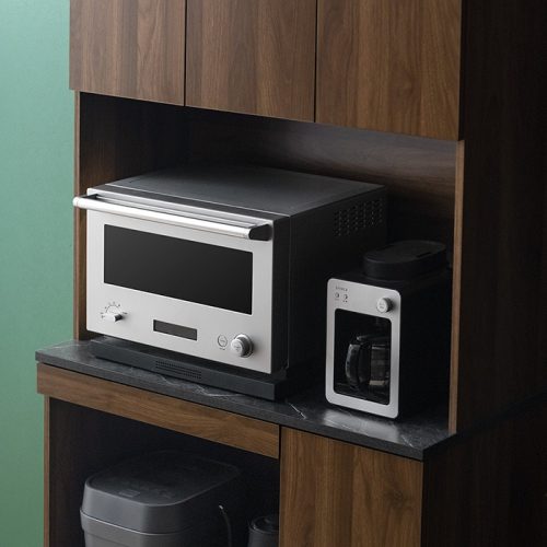 熱や蒸気を逃しやすいので、スチームオーブンレンジなどの設置も可能。スライド棚が付いているため、炊飯器などの家電も快適に使えます。