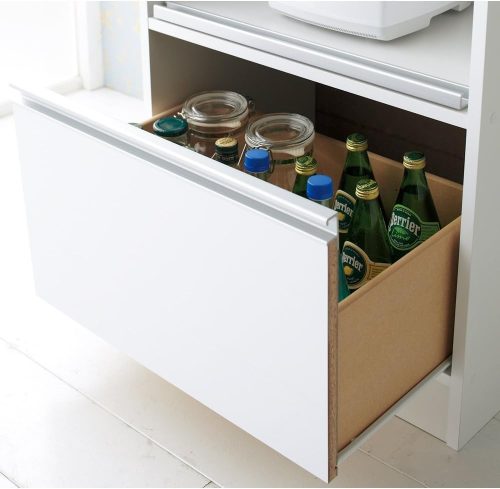最下段には、内寸高さ32.5cmと深型の引き出しを搭載。水や食材などストック品の保存に便利です。引き出し前面は光沢仕上げで、水ハネや汚れがあってもサッと拭き取れます。