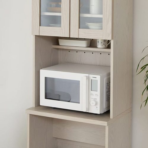 背面に通気口やコードを通す穴があれば、熱がこもる心配を軽減できます。引き出し付きのタイプは、細々としたカトラリーや食器類も収納できるのがメリット。扉を上手に活用して、整理整頓された空間を作ってみてください。