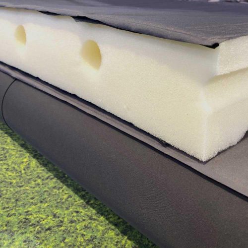 クッション性と保温性に優れた約6cmのインフレーターマット。ウレタンフォームは硬めの反発設計を採用し、局部的な沈み込みを軽減しています。