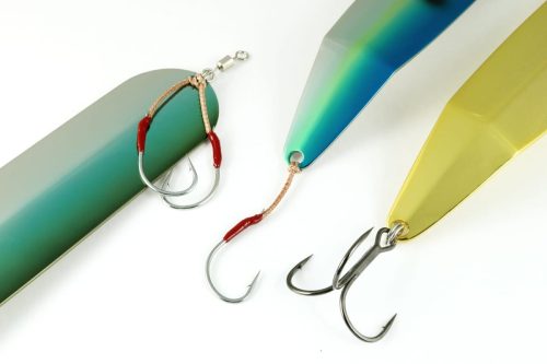 フックは製品によって標準で付いている場合と付いていない場合とがあります。別途セットする場合はトレブルフックか、ジギング用のシングルフックを複数付けることになるので、留意しておきましょう。