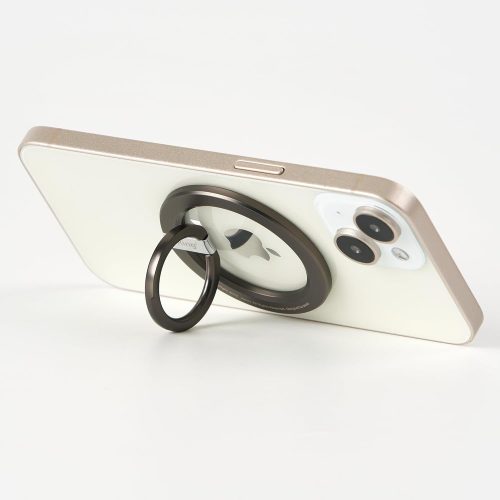 シンプルでおしゃれなデザインのスマホリング。本体にマグネットが内蔵されており、iPhone 12シリーズ以降のモデルに磁力で固定できます。MagSafeに対応するケースであれば、装着した状態でも使用可能です。