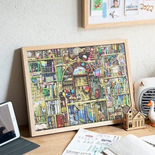 さまざまな本で埋め尽くされた、古い本棚を描いたジグソーパズル。標準サイズより小さい、約1×1cmのマイクロピースを採用しているため、難易度が高めの1000ピースパズルを探している方におすすめです。