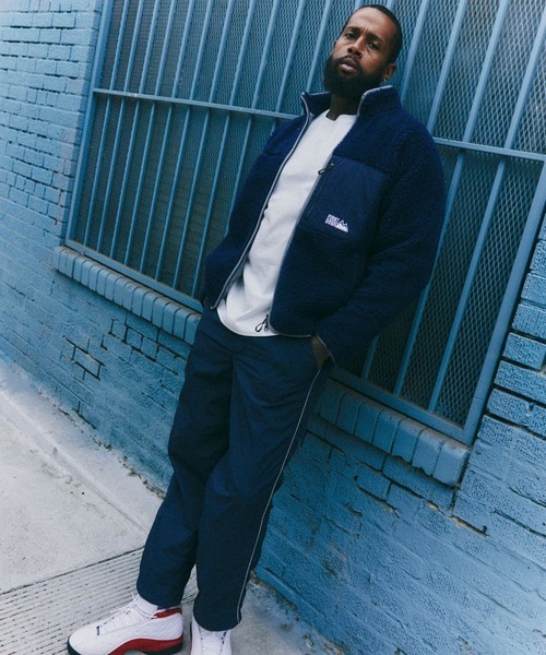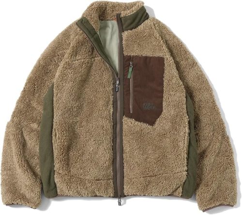 肌触りのよいボアフリース素材をベースに作られたジャケットです。一部にナイロン素材を用いることで、ルックスにメリハリをつけています。キャンプなどのアウトドアシーンにはもちろん、街歩きにもマッチする、おすすめのアイテムです。