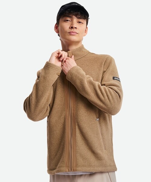 生地には、ソフトなポーラーフリース素材を使用。スタンドカラー仕様で首元までしっかりと覆えるため、保温性にも優れています。また、ダブルジップで着こなしを工夫したり、通気性を高めたりできるのもおすすめのポイントです。