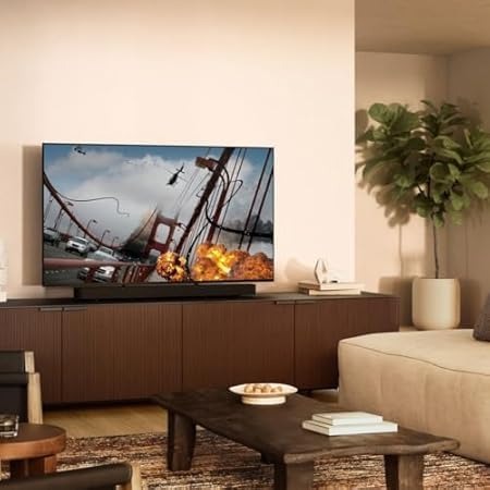 低音から高音まで豊かな音を表現するスピーカーを搭載。Dolby Atmos対応で立体的な音響も楽しめます。Google TV機能でネット動画も手軽に視聴可能です。