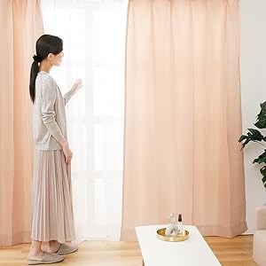 洗濯機で洗濯可能なので、手入れは簡単。カーテンフックとタッセルが付属し、女性1人でも簡単に取り付けられます。全12色展開で、薄い淡い色は光を通しやすく、濃い暗い色は光を通しにくい特性があるため、好みや用途に合わせて選べるのも嬉しいポイント。機能性とデザイン性を両立したい方におすすめです。