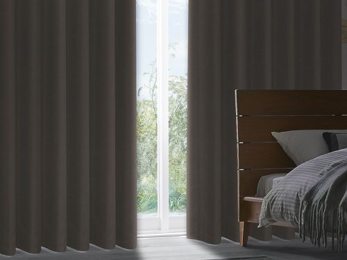 厚手ポリエステル生地を使用したカーテンです。深色タイプは1級遮光で遮光率99.99%を有し、昼間の強い日差しや夜間の視線をしっかり防ぎます。安心して休める環境作りにおすすめの遮光性能です。