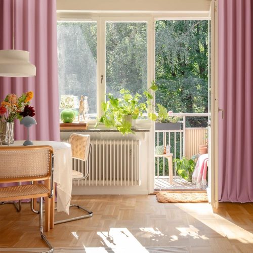カーテンは、窓と室内の間に空気の層を作ることで、外からの熱や冷気の侵入を防ぐ役割があります。夏は強い日差しを遮って室温の上昇を抑え、冬は室内のあたたかい空気を逃がさず暖房効率を高めてくれるのが魅力。冷暖房の効率が向上するため、電気代の節約にも貢献します。