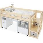カラーはホワイト・ノルディックナチュラルの2色展開。シンプルでインテリアに馴染みやすいデザインです。組み立て式ながらしっかりとした構造で、長く使えるアイテム。子供の成長にあわせて活用できる、実用性の高いシステムベッドです。