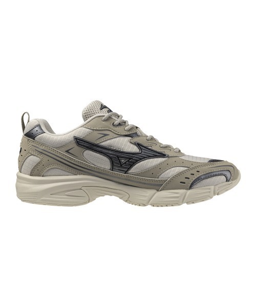 サイドにミズノのロゴを穴飾り仕様で配した、シンプルな幅広スニーカー。アッパーには人工皮革を採用しており、上品な雰囲気を演出しています。さまざまなシーンで履き回せる、クリーンなデザインのモノを探している方におすすめのアイテムです。