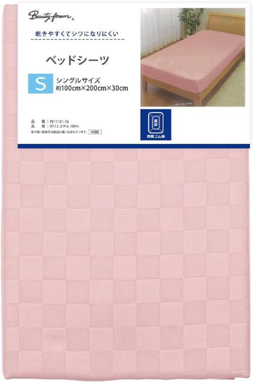 ポリエステル100%を採用したベッドシーツ。洗濯後の乾きが早くシワになりにくいのが特徴。市松柄の上品なデザインが寝室に洗練された印象を与えます。