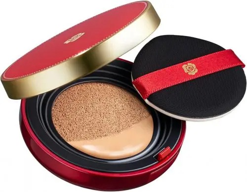 クッションファンデーションとは、コンパクトケースに入ったリキッドファンデーションのことを指します。リキッドファンデーションを浸み込ませたスポンジが取りつけられており、付属のパフに液を取って肌に押しつけるように使用するのが特徴です。