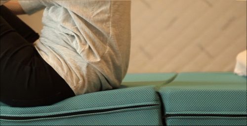 中材は肩・腰・脚の3つのブロックに分かれており、入れ替えて使うことが可能。定期的に配置を変えることでへたりを軽減し、長持ちさせられます。さらに、折りたたんで省スペースで収納できるほか、立てかけて陰干しもできるため衛生的に保ちやすい仕様です。