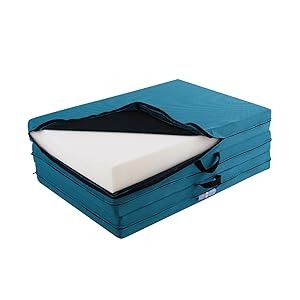 厚さは11cmあり、腰のラインをしっかりサポート。適度に厚みがあるため、畳やフローリングに直接敷いても快適に使用できます。さらに、三つ折りできる設計で、コンパクトに収納可能。キャリーハンドル付きなので、移動や持ち運びも手軽です。