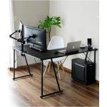 手軽に設置できるスタイリッシュなL字型パソコンデスクです。PVCの天板と粉体塗装スチールのフレームを使った本体は、約幅120×奥行150×高さ74cm。6〜8畳の部屋にちょうどいいサイズなので、ワンルームでの一人暮らしにもおすすめです。