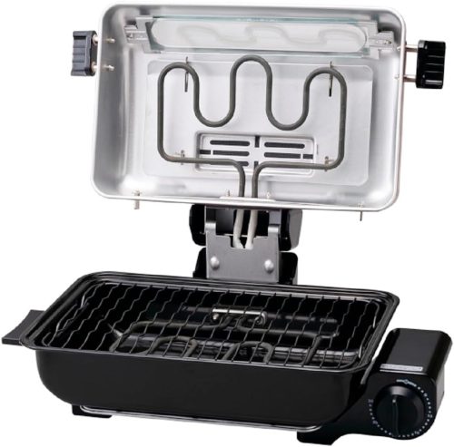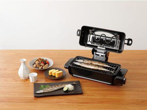 省エネ反射板で効率的に食材を焼き上げる網焼き器。ヒーターの熱を上向きに反射するため、焼き時間を短縮できます。本体兼用の水受け皿が落下する油を受け止め、煙が発生しにくいのが特徴です。
