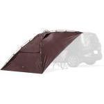 ロッジ型デザインが目を引く、3WAYレイアウト対応のカーサイドテント。車のサイドドアまたはバックドアに連結でき、単体テントとしても使用可能です。ブラウンで統一されたフレームとポールがスタイリッシュな雰囲気を演出します。