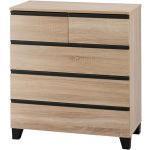 整理整頓がしやすい幅80cmの木目調ローチェスト。プリント紙化粧パーティクルボードを使用しており、ナチュラルな風合いを楽しめます。