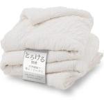 複数の素材を重ねた多重構造により、羽毛布団のようなあたたかさと軽やかさを実現。微起毛スムースニット生地がシルキーな肌触りを生み出し、肌に引っ掛かりにくく快適に使えます。動物性たんぱく質を含んだ素材を使用していないため、ホコリが出にくいのもメリットです。