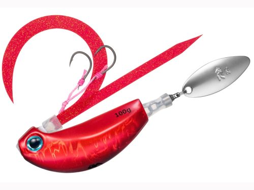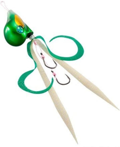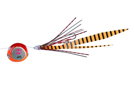 ハリはシングルフックが2本付きますが、直列なのもポイント。双方の距離が近いため、どちらか一方に掛かれば、もう一方はアシストフック的な役割を果たすのが魅力です。重さは45gから250gまでの9種類。カラーは8色をラインナップしています。
