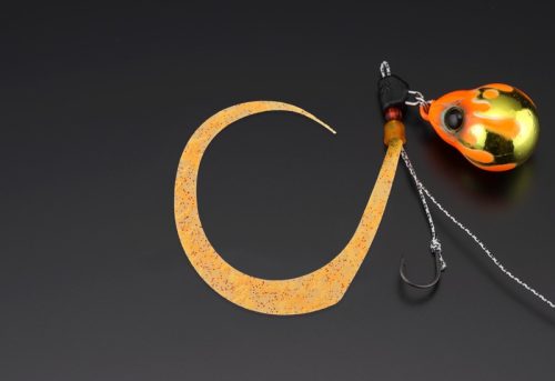 やや特殊な形状をしたおすすめのタイラバ。スピンテールジグにストレート系とカーリー系のネクタイが付いているタイプで、ボディとフックの距離が近く、果敢なバイトに対して掛かりがよいのが特徴です。