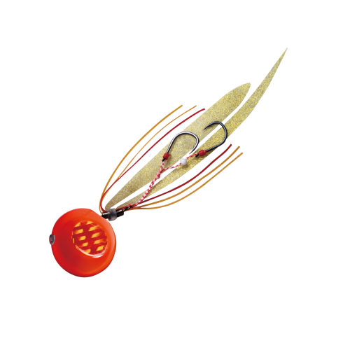 タイプとしては遊動式で、ヘッドの素材は鉛。ハリは紅牙フック(サクサス)サイズSで、グレバリでいうところの10号が目安です。重さは45gから250gまでの8種類。カラーは14色をラインナップしています。