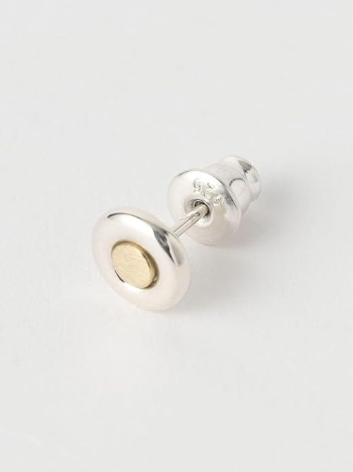 シルバーで仕上げたピアスに、ゴールドカラーの真鍮をあしらったモダン・ミニマルなデザインです。ピアス本体はシルバー925、ゴールドカラー部分が真鍮で構成されています。