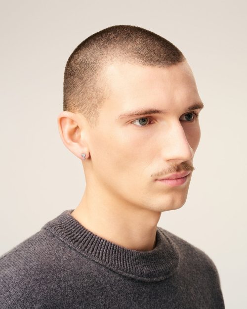 メンズピアスはスタッドタイプや片耳タイプなど、シルバーやゴールドを用いたミニマルなデザインを扱っています。