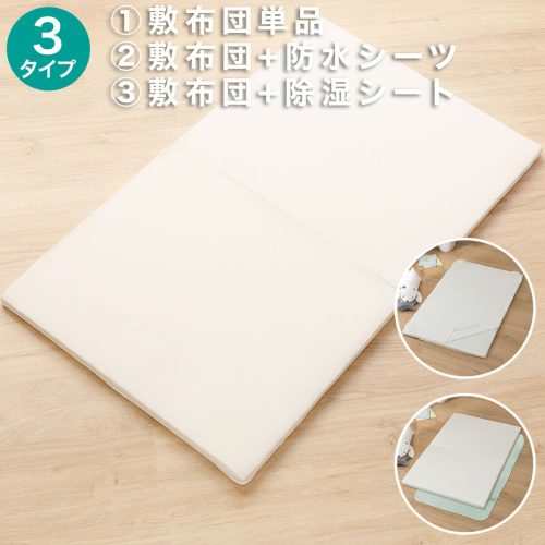 二つ折りできる敷き布団と防水シーツのセットです。敷き布団の固綿部分以外は洗濯機で洗えます。固綿部分や防水シーツは、手洗いでのお手入れが可能。清潔に使い続けられるのでおすすめです。