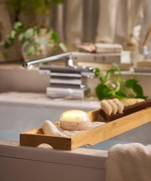 また、アウトドアでのカジュアルな使用にも耐えられるタフな設計。IP68の防塵防水仕様で、シャワーの水がかかりやすい場所への設置もおすすめです。バスタブの中へ落とした場合は水に浮かび、簡単にすくい上げられます。