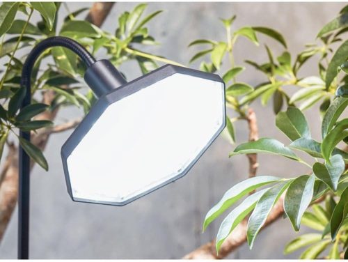 八角形パネルの面発光技術で広範囲に均一な光を照射する植物育成ライト。3000Kと5000Kの2種類のLEDを搭載し、育成段階に応じて光のスペクトルを調整できます。専用アプリから遠隔操作が可能で、調光・調色機能に加えてスケジュール管理やシーンモードまで自在にコントロールできる仕組みです。