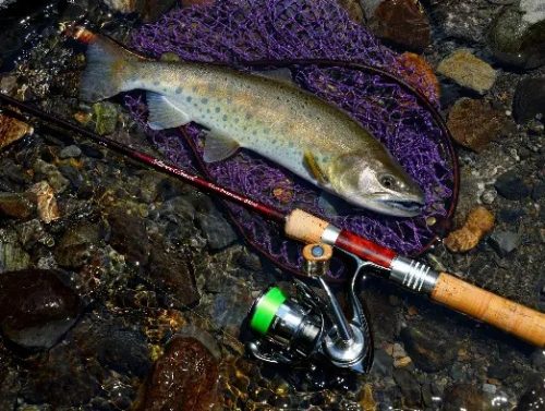 渓流トラウトで使うのにおすすめのスピニングロッド。小型のシンキングミノーやスプーンなどの定番ルアーを操作するのに適したモデルで、ショートレングスかつ軽量に仕上げているのが特徴です。