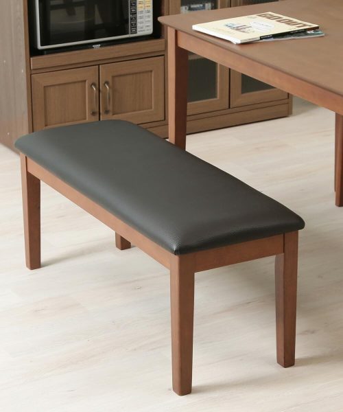 背もたれがないすっきりとしたフォルムもポイント。120cm幅のテーブル下にぴったり収まるため、使わないときはテーブル下に収納できます。省スペースで使える家具を探している方におすすめのモデルです。