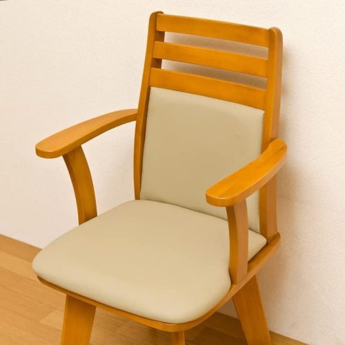 立ち座りがラクにできる木製のダイニングチェアです。肘掛けが手すりの役割を果たし、支えとなるため、足腰への負担を軽減できるのが特徴。背もたれは大きめで背中全体を包み込み、長時間座っていても疲れにくい設計になっています。